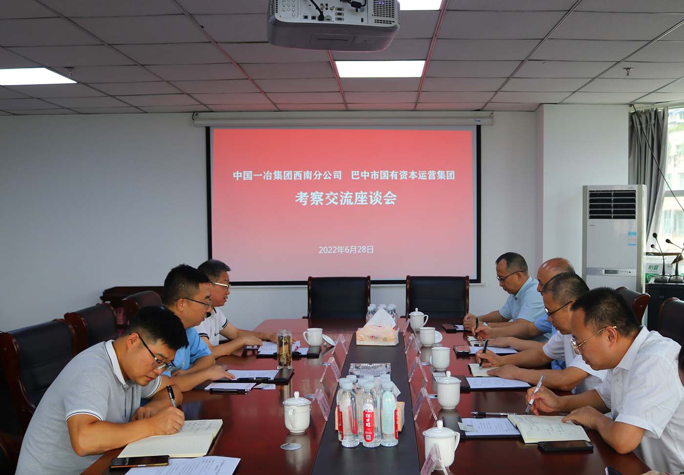 6月28日上午,中国一冶集团西南分公司常务副总经理李明带队赴我司开展考察。中国一冶集团西南分公司副总经理何阳、市场总监王小东陪同考察。巴中市国有资本运营集团党委书记、董事长王弘出席座谈。