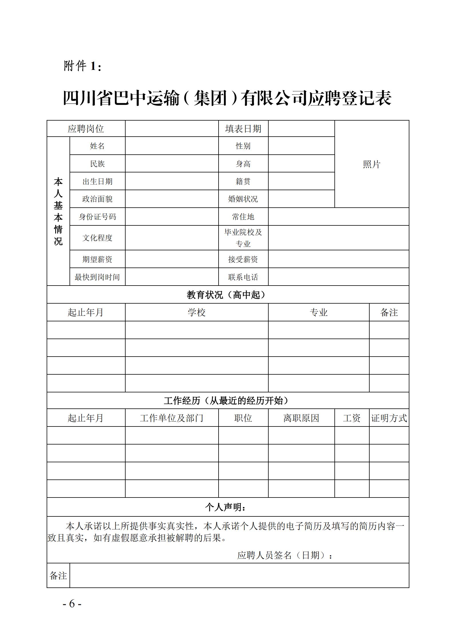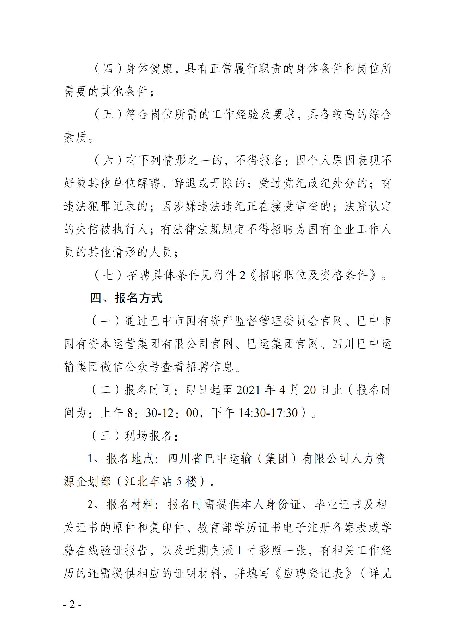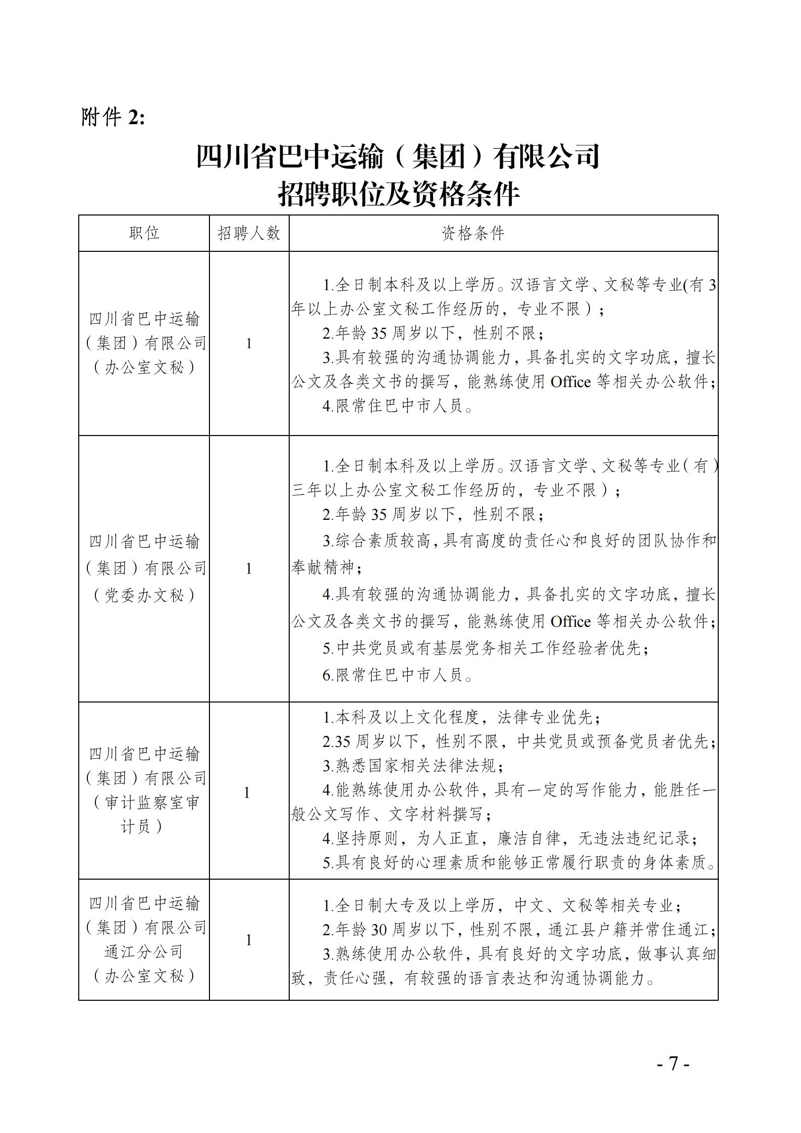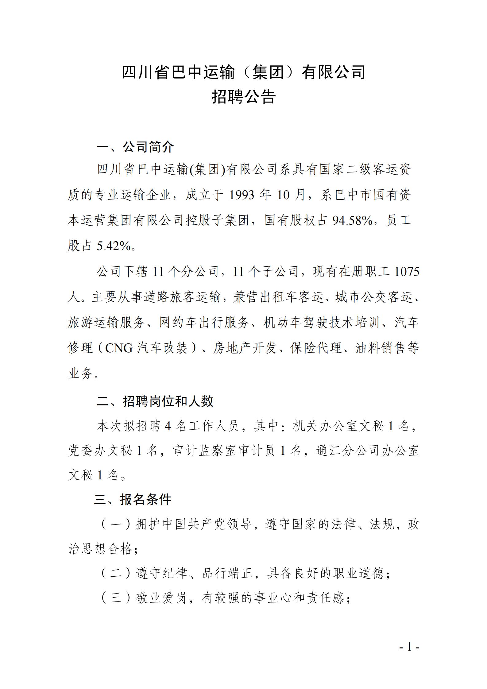 四川省巴中运输(集团)有限公司招聘公告